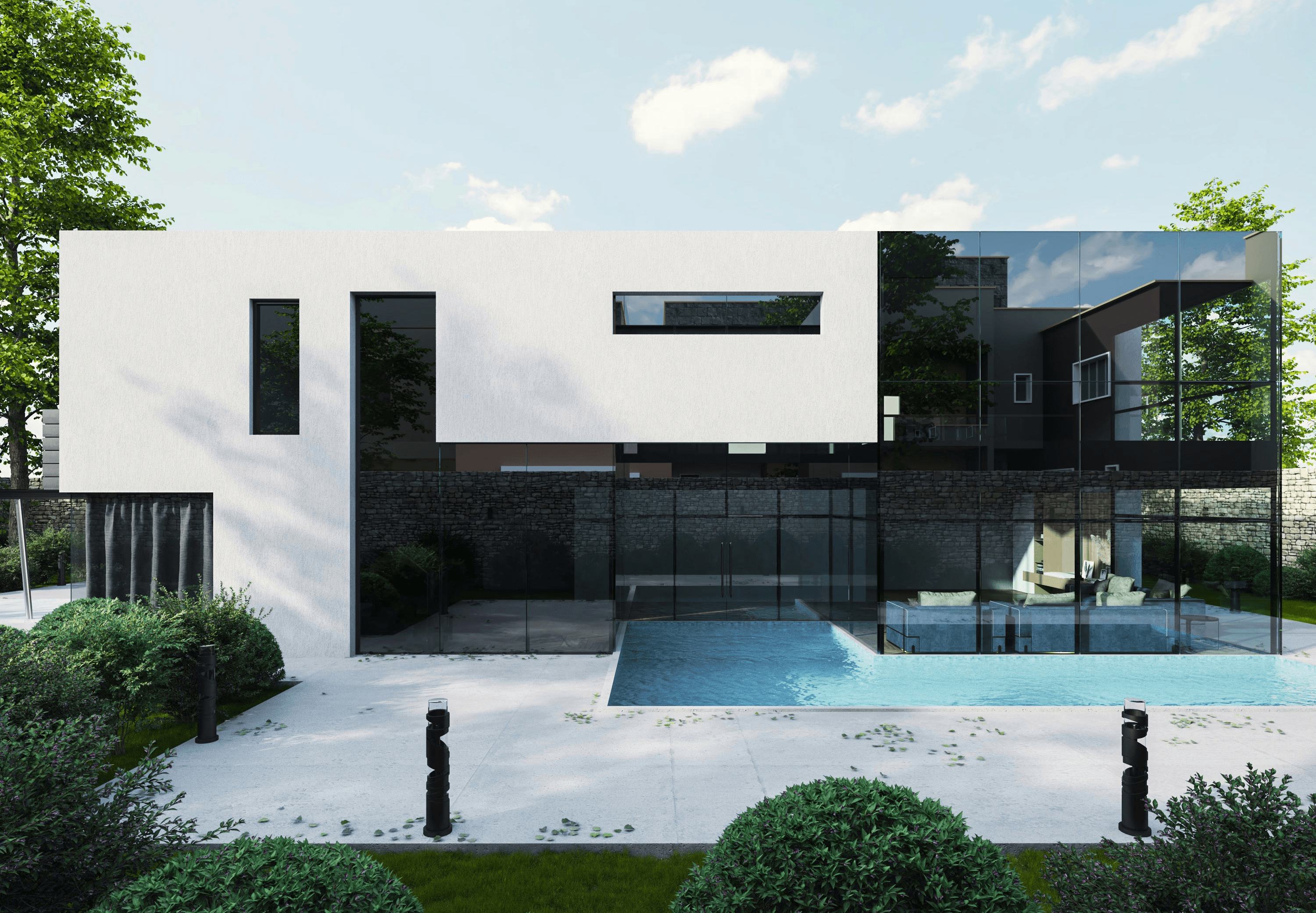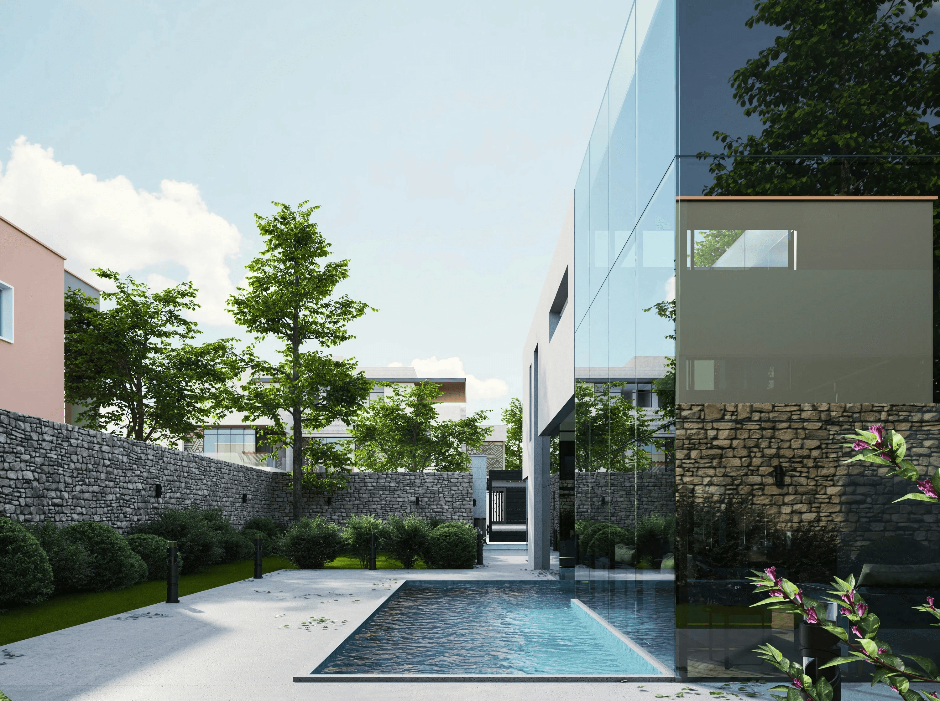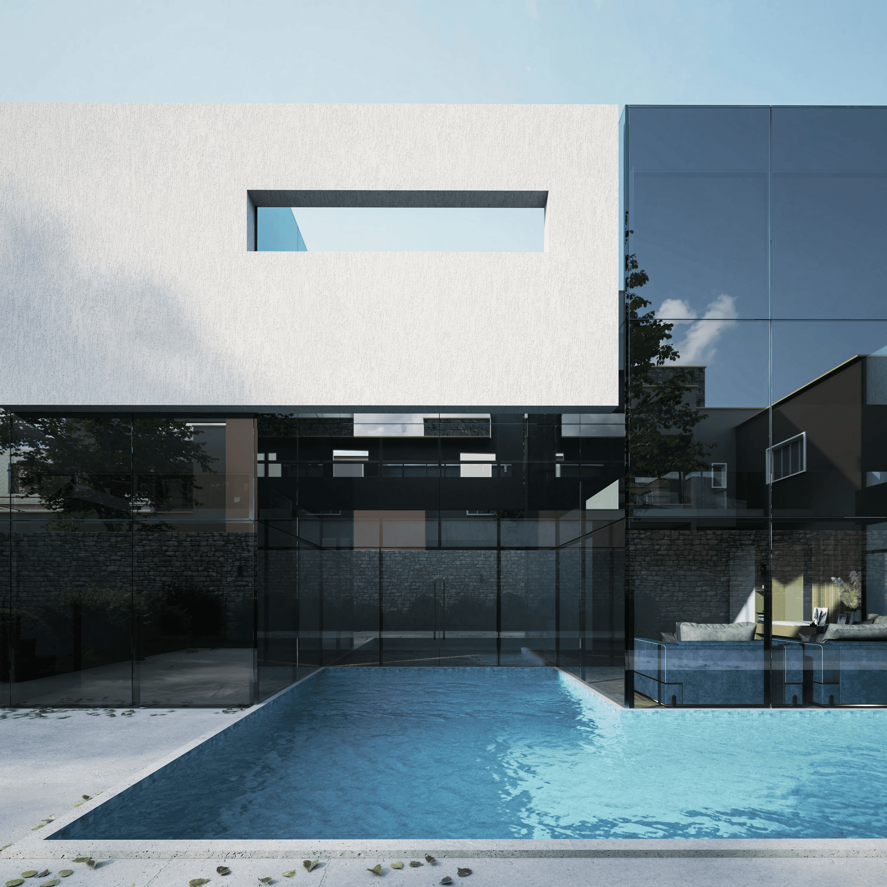 Horizon Villa dissolves the threshold between shelter and landscape. The living areas open onto a continuous stone terrace that flows into the pool and beyond — no step, no frame, no interruption. Bedrooms are oriented to catch the morning light and the evening breeze, reducing the need for mechanical cooling. As the day moves, so does the villa — shifting between open and sheltered, bright and shaded, social and still.